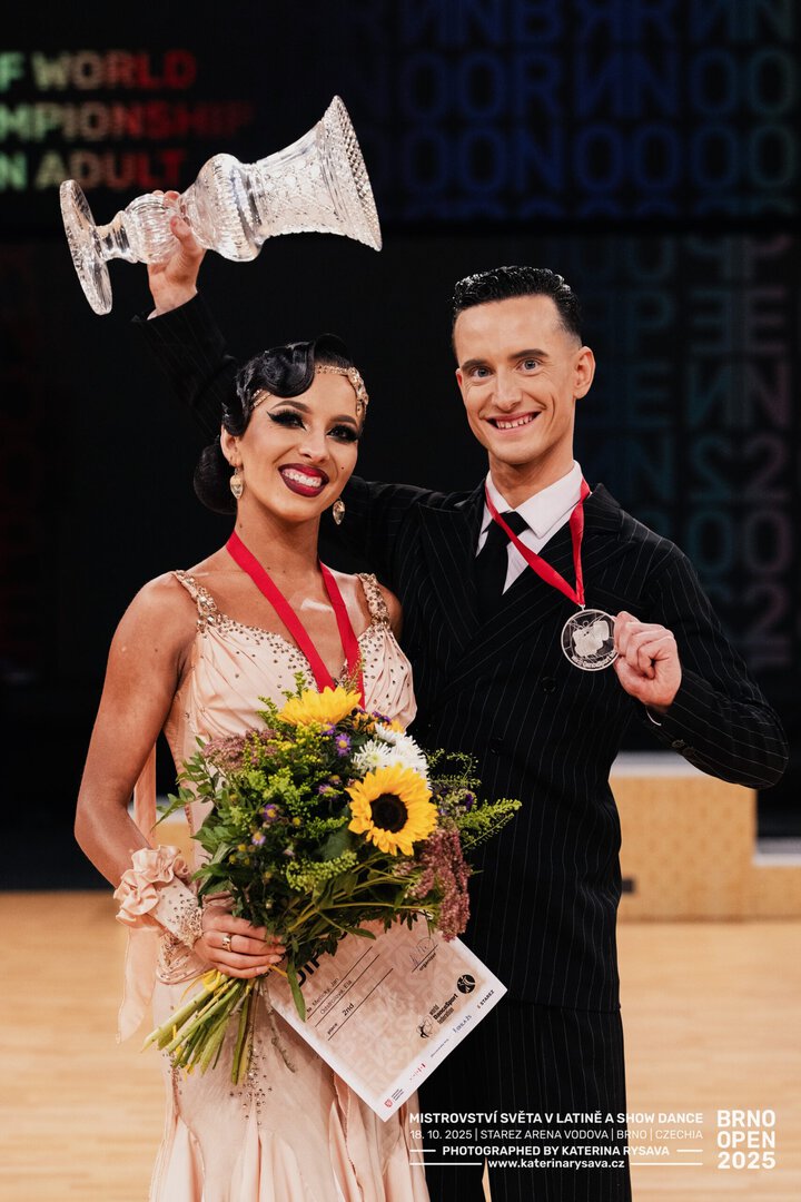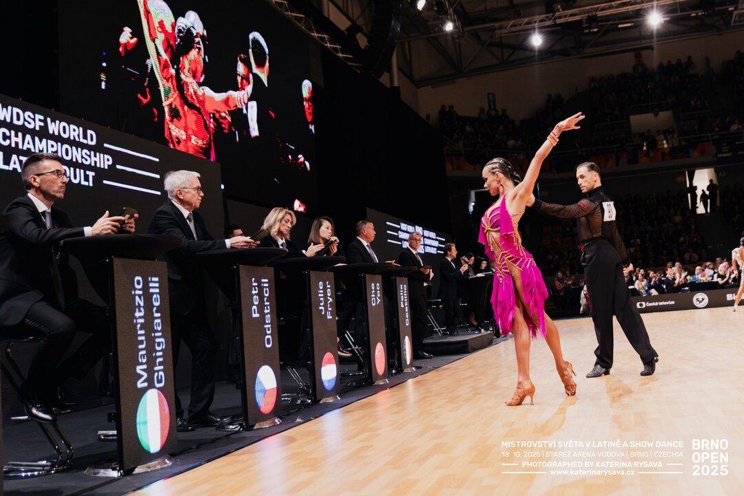 Nezapomenutelný večer světového tanečního sportu se odehrál ve Starez Aréna Vodova v Brně, kde více než 4 000 diváků zaplnilo tribuny při dvou mimořádných Mistrovstvích světa WDSF v latinskoamerických tancích – dospělí a Mistrovství světa WDSF v Show Dance Standard – dospělí